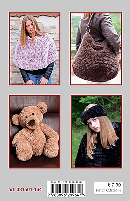 In questo manuale di 50 pagine circa troverai modelli e spiegazioni passo passo per realizzare con le tue mani e con i filati effetto pelliccia diversi capi tra cui cappelli, mantelle, borse e altro ancora. Per ogni modello avrai a disposizioni dettagliate spiegazioni passo passo e foto a colori.
