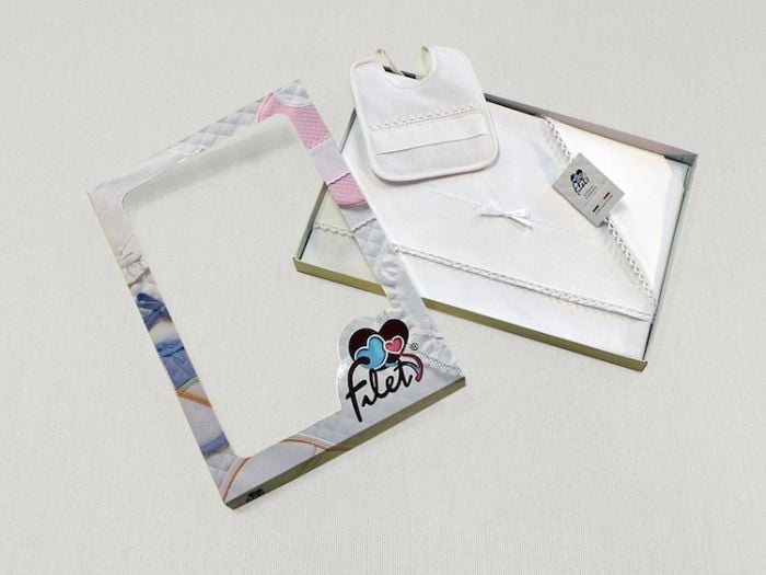 Per il tuo corredino da ricamare o per un regalo ecco l'idea perfetta per te! Misura 90x120 cm e sono inclusi 3 pezzi: lenzuolino, federa, copri-materasso e bavaglino. Molto simile al precedente modello questo lenzuolino da ricamare a punto croce si differenzia principalmente per due particolari: il bordo di tela aida è leggermente più basso, circa 7 cm. Inoltre il modello qui in vendita include un bavaglino neonato sempre da ricamare. Per il resto conserva tutte le caratteristiche degli altri modelli Filet, vale a dire ottime rifiniture e qualità dei tessuti utilizzati. Le misure sono 70x90 cm per la carrozzina e 90x120 per la culla.