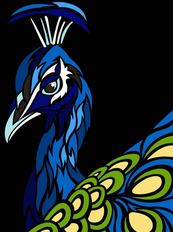La serie Multicolore con animale è composta da 4 disegni, tutti su sfondo nero e con colori brillanti in primo piano