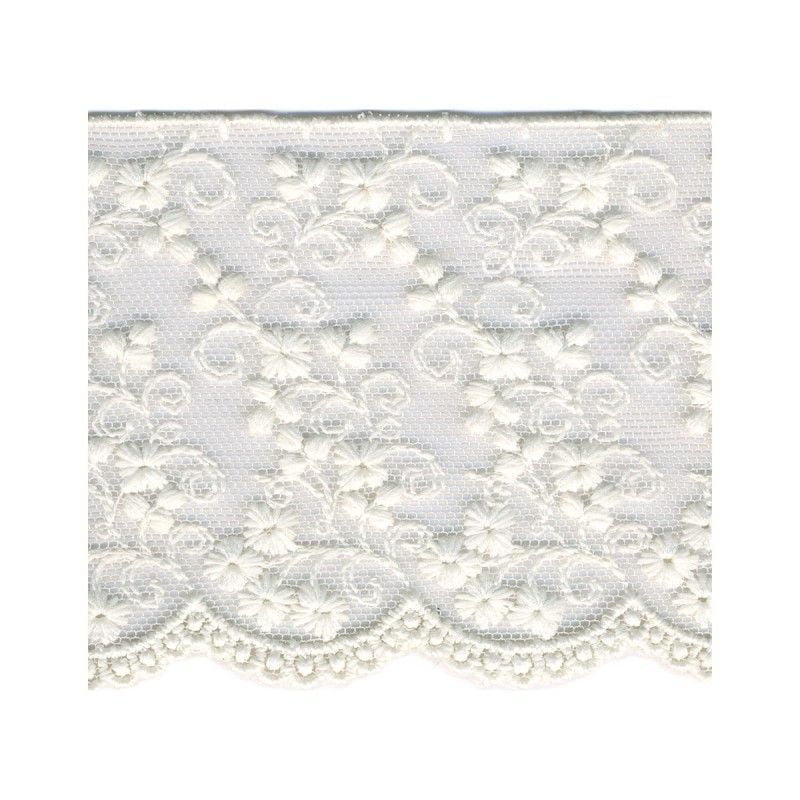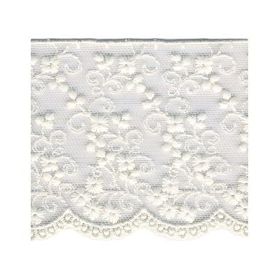 Alto 7,5 cm questo delicatissimo pizzo saprà impreziosire tutti i tuoi progetti creativi e sartoriali. Il prezzo si riferisce ad 1 mt ed è disponibile in vari colori. In particolare nei colori bianco e avorio si presta alla rifinitura di cuscini porta fedi, stole eleganti e raffinate, camicette di seta e tanto altro ancora.