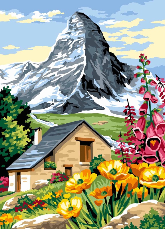 Questa tela ritrae un pittoresco chalet ai piedi di un imponente monte, circondato da una rigogliosa fioritura alpina. I colori vivaci dei fiori in primo piano contrastano con i toni freddi della montagna, creando un'armoniosa scena di montagna. Perfetta per gli amanti della natura oltre che del ricamo a mezzopunto.