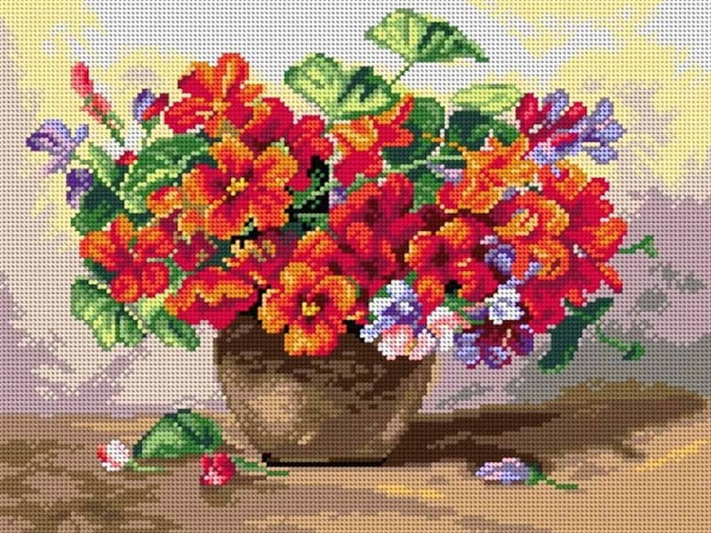 Vaso con Fiori - Mezzopunto da 30x40 cm